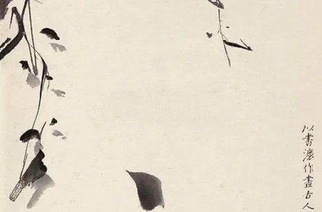 《驢背吟詩(shī)圖》上老翁和驢僅用寥寥數(shù)筆便形神俱備,驢兒踏著輕快步伐的神氣躍然紙上。背景樹枝、藤蔓則筆點(diǎn)零亂,使人頓有秋色蕭索之感。運(yùn)用恰到好處的省略手法,徐渭營(yíng)造了一個(gè)空而不虛、意境深遠(yuǎn)的藝術(shù)空間。以書法筆意入畫是《驢背吟詩(shī)圖》的又一特色。圖中人、驢、樹、藤的畫法隱有真、行、草、隸之筆意,令人感覺其間有一股勃勃不息的活力,這正是徐渭之畫能脫塵免俗、卓爾不群的原因所在。