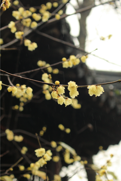 綻放的臘梅,在蕺山上巧笑嫣然。以花為尺,度量這一季的芳香?;ɡ铮€帶著絲絲的甜味。