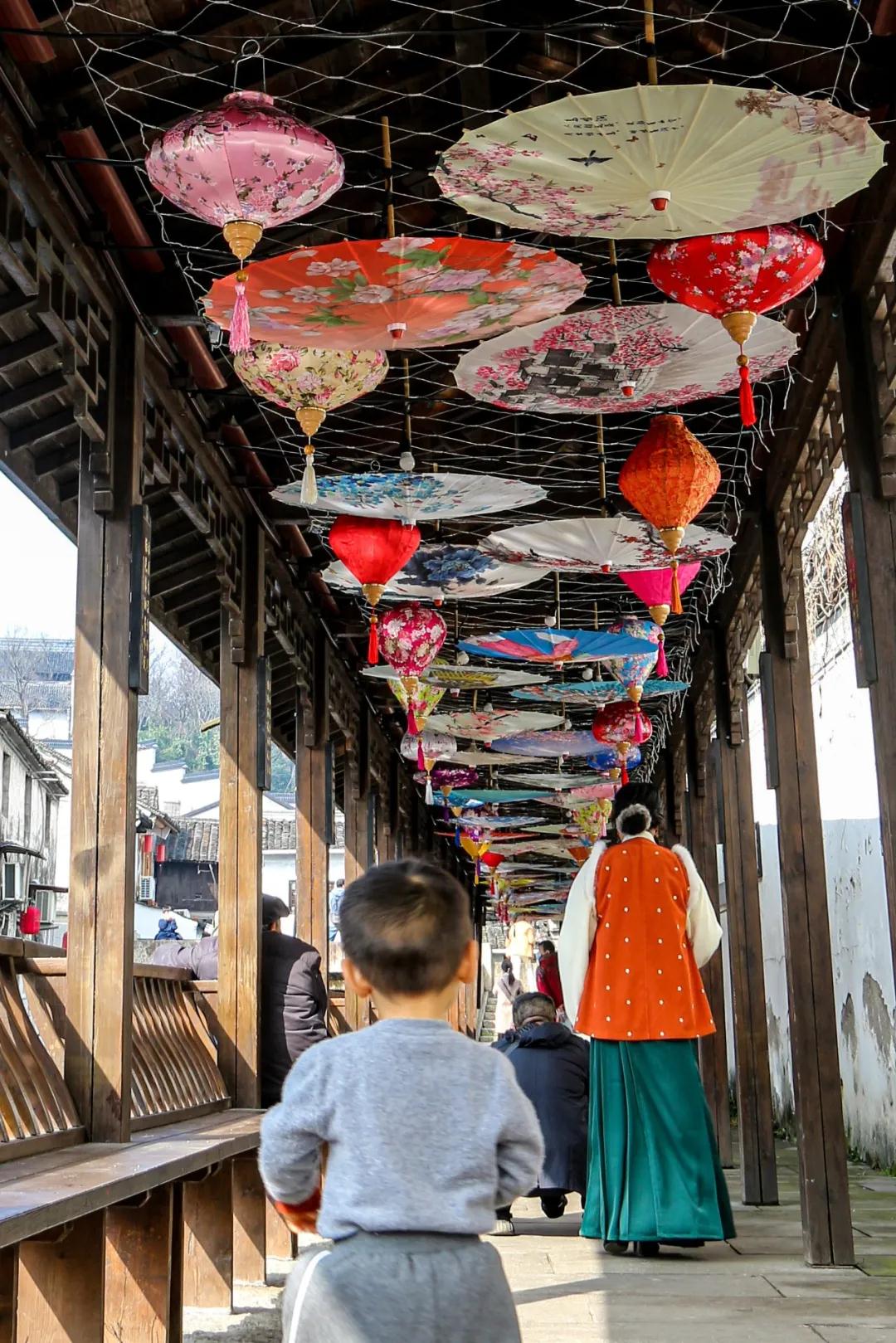 追著年的顏色,聽著年的歡聲笑語。漫步詩廊,傾聽廊邊河水的輕吟,那是新年和春的聲音;漫步詩廊,一覽廊下花燈的濃彩,那是新年和春的顏色。