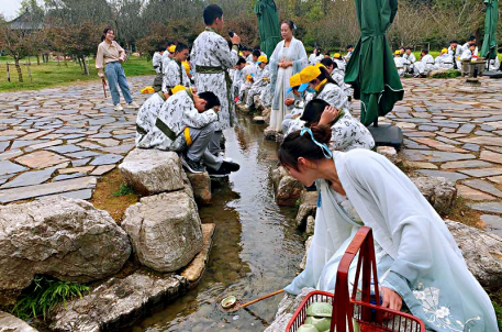 10月29日,諸暨明城中學(xué)的學(xué)生們在蘭亭景區(qū)內(nèi)開展以“古越文化之旅”為主題的系列研學(xué)活動,經(jīng)過前期多次對接,景區(qū)活動部安排了開營儀式、前置課程、曲水流觴、石刻拓碑等體驗類活動,以室外情景互動,室內(nèi)授課聆聽、手工實踐操作等研學(xué)教育手段相融合,使學(xué)生們多方位了解蘭亭文化,真正發(fā)揮研學(xué)活動知行合一的意義。