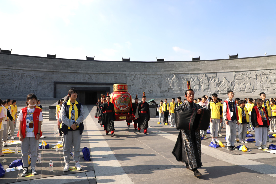 普及、傳承大禹文化和精神,是中小學(xué)教育的重要任務(wù)之一。為進(jìn)一步彰顯愛(ài)國(guó)主義教育基地的作用,大禹陵基于景區(qū)實(shí)景資源以及學(xué)校教育、學(xué)生發(fā)展需求,推出民祭大禹的研學(xué)活動(dòng),讓學(xué)生參與傳統(tǒng)祭祀活動(dòng),現(xiàn)場(chǎng)體驗(yàn)原汁原味的祭祀文化,并從中感受大禹陵的歷史文化底蘊(yùn),得到精神上的洗禮和升華。