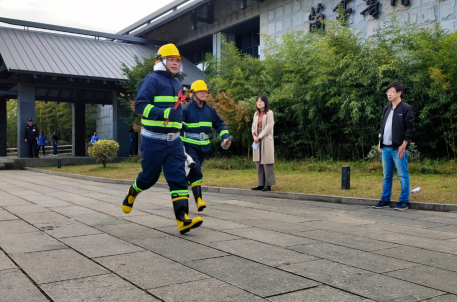 為確保景區(qū)在遇到突發(fā)火災(zāi)時,能在最短時間內(nèi)充分發(fā)揮消防安全保障機制作用,快速、高效、有序地實施滅火工作,防止人員傷亡和最大限度地減輕財產(chǎn)損失,進一步普及消防安全知識,增強員工消防安全意識,結(jié)合消防宣傳月各項活動,11月17日下午,蘭亭景區(qū)在書法博物館廣場組織全體職工和安保人員進行了一次消防安全實戰(zhàn)演練。
