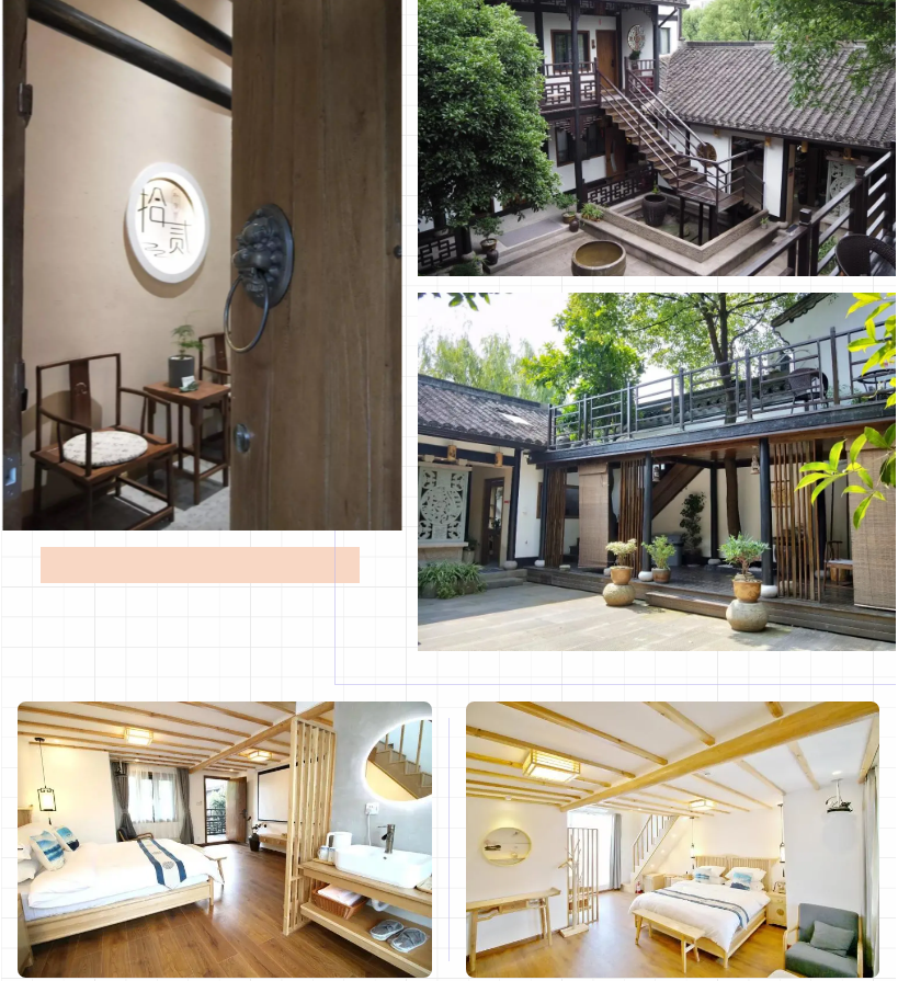 這是一座江南四合院,庭院方正,呈天井模樣,一棵桂花樹亭亭如蓋。青磚石瓦,曲徑深幽。院落清新質(zhì)樸又巧奪天工,浮雕木門,花雕木格窗,有恍如隔世的時間感。古樸之風(fēng)撲面而來,陽光,把墻壁照的干凈整潔,滿眼綠意讓人瞬間平靜下來,享受難得的悠哉、舒緩。