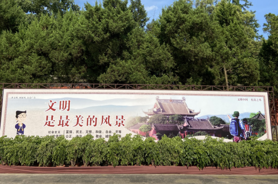景區(qū)著力強(qiáng)化社會(huì)主義核心價(jià)值觀(guān)、文明旅游宣傳,在游客中心、大入口、景區(qū)內(nèi),通過(guò)噴繪廣告、宣傳海報(bào)、LED電子屏等多種形式,引導(dǎo)廣大游客融入文明城市創(chuàng)建的氛圍中。