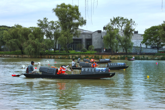 整齊劃一的船槳、奮力揮動(dòng)的臂膀、肆意揮灑的汗水和慷慨激昂的吶喊……別出心裁的趣味烏篷船比賽充分展現(xiàn)了巾幗女子健康、自信的活力風(fēng)采。