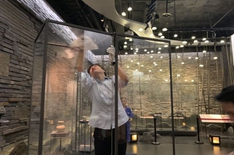 清潔展柜更換標簽 提升游客觀感體驗