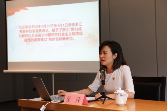 7月7日下午,集團(tuán)黨委委員、紀(jì)委書記吳萍在大禹陵景區(qū)作“做擔(dān)當(dāng)有為守規(guī)矩的文旅主力軍,努力在建設(shè)‘重要窗口’新征程中交出文旅滿意答卷”的主題黨課。