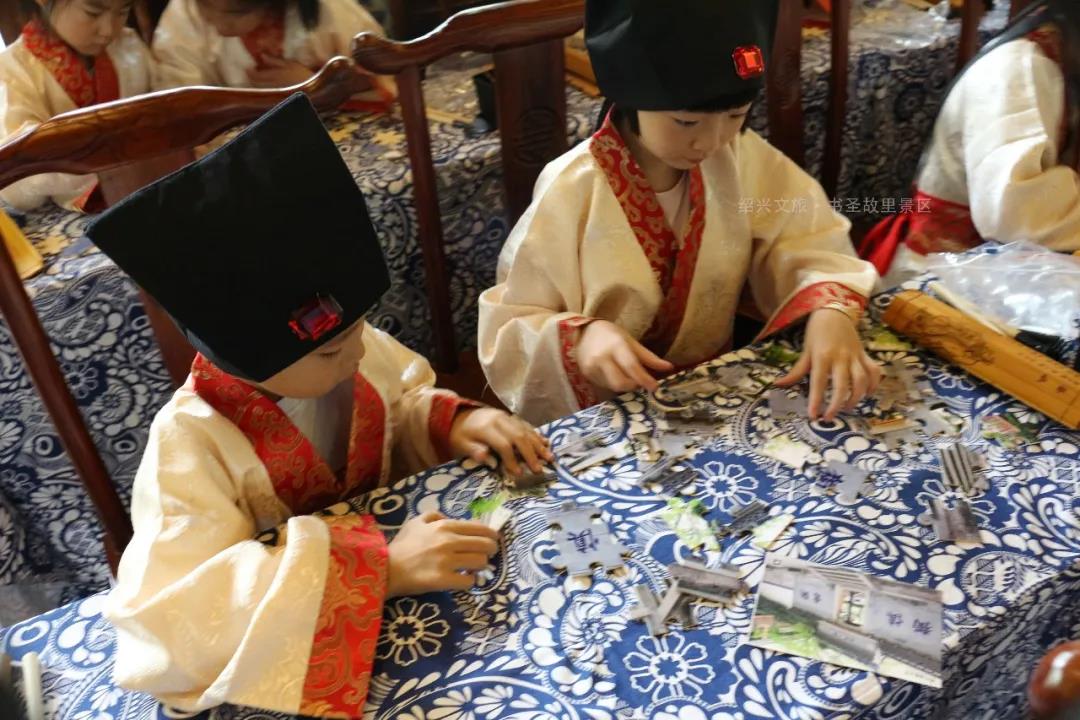 孩子們?cè)谶@里著古裝、敬先賢、種蕺草、唱童謠、學(xué)紹興方言、講名人故事、了解“三烏”文化、題扇橋頭聽王羲之題扇的故事……從講堂到街區(qū),重溫紹興名人歷史,了解紹興悠久文化,體驗(yàn)紹興傳統(tǒng)手工藝制作。