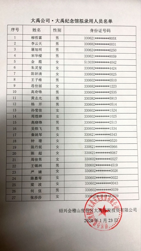 紹興會稽山度假區(qū)大禹開發(fā)投資有限公司 · 大禹紀(jì)念館擬錄用人員公示