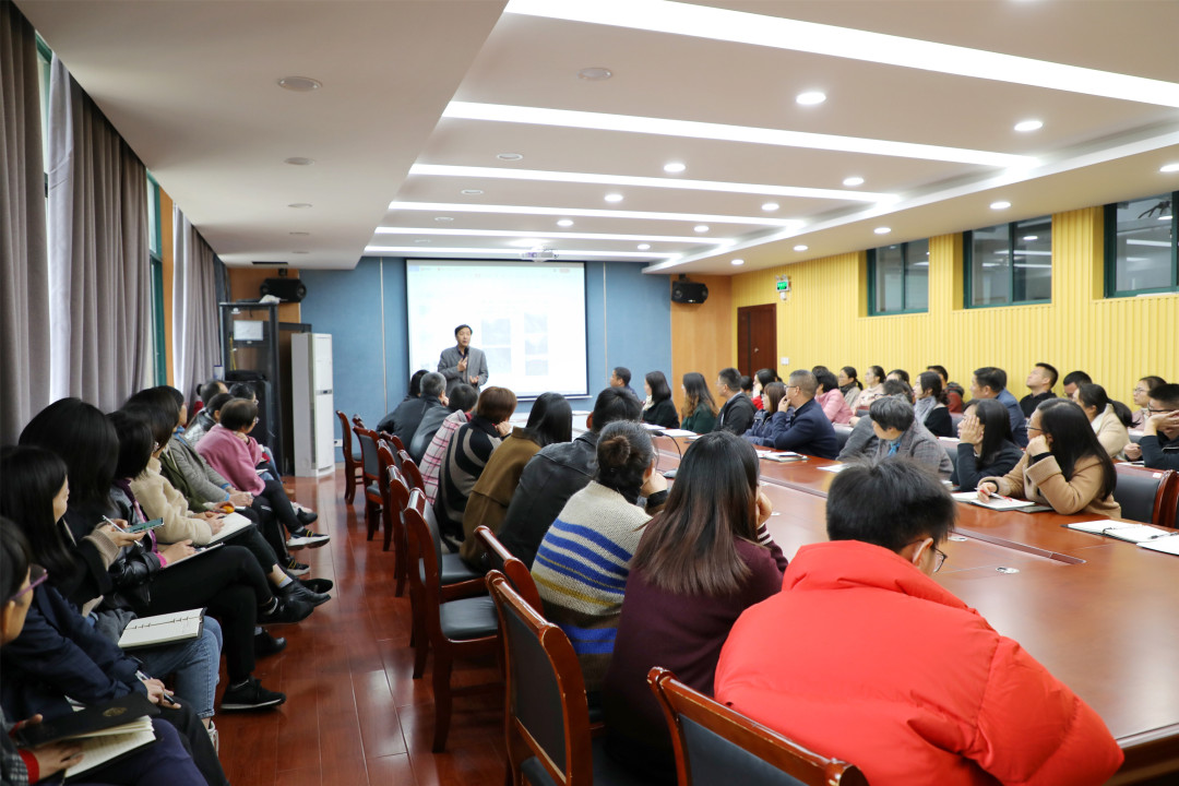 本次進(jìn)校園活動(dòng)還邀請(qǐng)到紹興文理學(xué)院周一農(nóng)教授,面向校內(nèi)教職工作《沿著大禹的足跡》主題講座。講座由三部分內(nèi)容組成,周一農(nóng)教授深度闡釋大禹功績(jī)、大禹文化的當(dāng)代價(jià)值以及大禹文化傳播情況,為學(xué)校老師們帶來了一場(chǎng)文化盛宴。