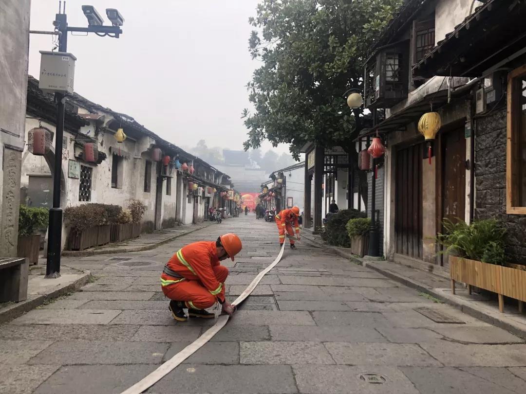 此次演練模擬省級(jí)文保單位尚德當(dāng)鋪出現(xiàn)火情,書圣故里景區(qū)微型消防站接到出警指令后,立即啟動(dòng)火警相應(yīng)機(jī)制,迅速調(diào)集微型消防站隊(duì)員到達(dá)火災(zāi)現(xiàn)場(chǎng)進(jìn)行救援。