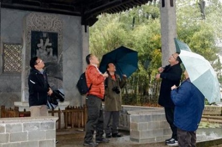 1月11日,日本西宮市土木局公園綠化部花與綠課課長藤原隆之、都市局建筑開發(fā)指導(dǎo)部建筑調(diào)整課課長巖井一郎在紹興市外事辦朱宏亮處長的陪同下來蘭亭書法博物館進(jìn)行學(xué)習(xí)交流考察。
