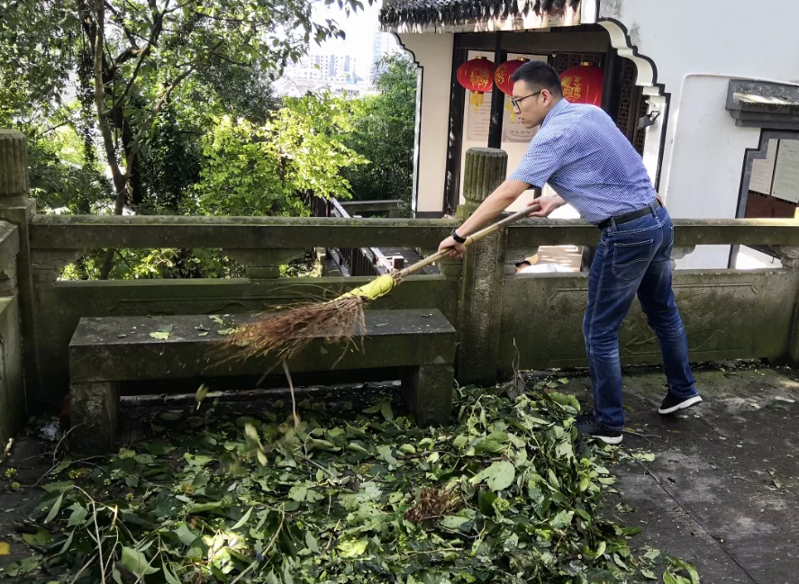 臺風過后,書圣故里景區(qū)黨支部書記、董事長龔凌帶領(lǐng)全體員工對景區(qū)開展清理工作,對景區(qū)內(nèi)的落葉、垃圾進行徹底清掃,確保道路干凈整潔,為游客創(chuàng)造一個良好的旅游環(huán)境。