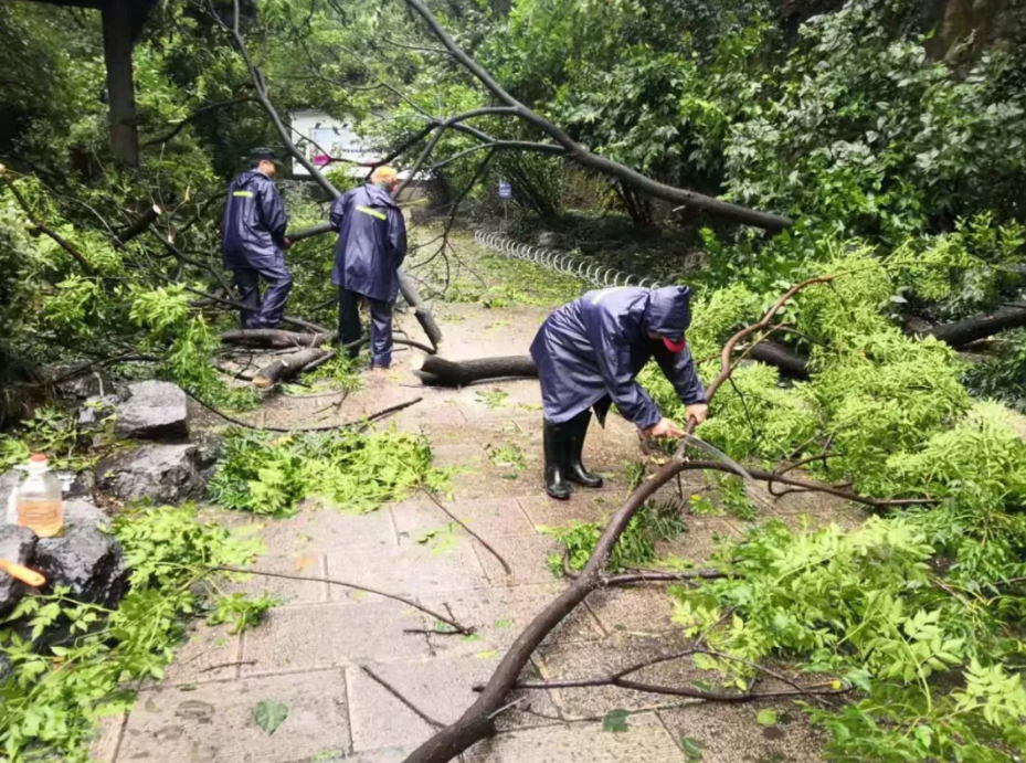 蕺山書院多處地方出現(xiàn)折樹和落葉遍地的情況,景區(qū)工作人員迅速展開善后清理工作。景區(qū)工作人員迅速清理被臺風刮落的樹枝和落葉,疏通道路,消除潛在安全隱患。