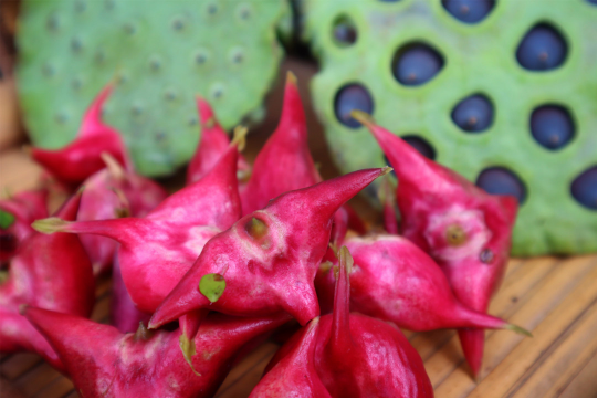 剝開紅菱色澤鮮紅的薄殼,內(nèi)里的果肉口感厚實,鮮嫩微甜,討人歡喜。中秋給孩子吃菱角,更寄托著大人希望他們“聰明伶俐”的祝福。