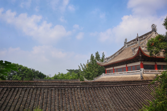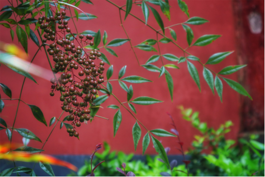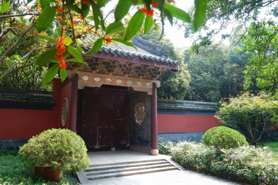 仲秋的陽光正好,透過天上的云隙、透過地上的林蔭,在禹廟紅墻上勾畫出形態(tài)各異的葉影,不時隨風珊珊而動;花叢林間,偶有秋蝶翩躚而過。