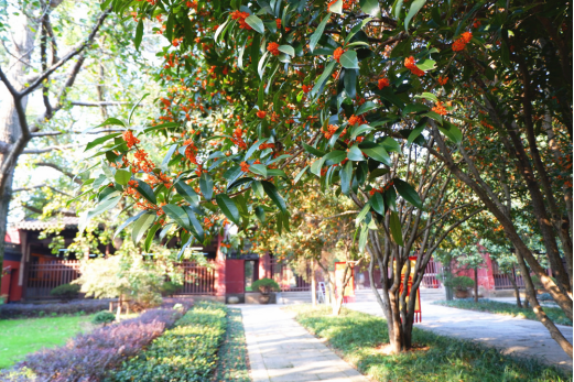 年年歲歲中秋日,陪伴我們的不僅有月光,也總有那幽然的桂花香。會稽南鎮(zhèn),一樹樹的桂花花開正好,其色金黃,其味淡雅,為人留下獨屬秋日的視覺享受與嗅覺記憶。
