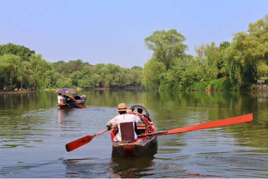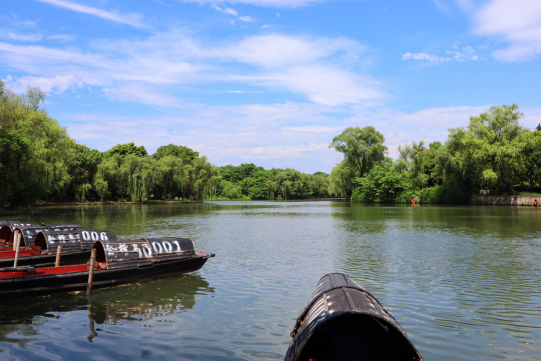 乘著會稽烏篷,檣櫓輕搖;看著船下漣漪,徐徐漾去。習習涼風中,猶能隱約聞到隔岸桂花香,如此沁人心扉,不禁想在這水色山間,逗留一刻,再逗留一刻。