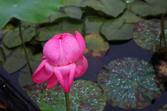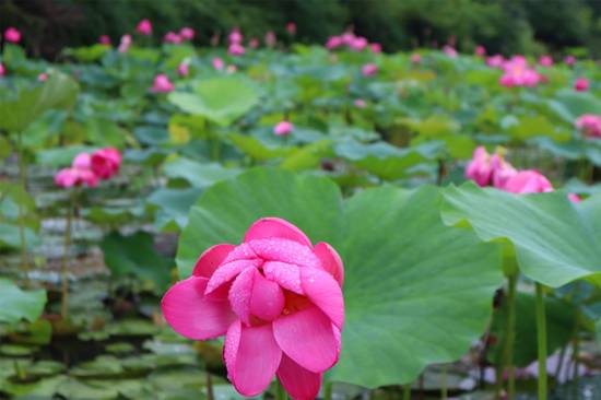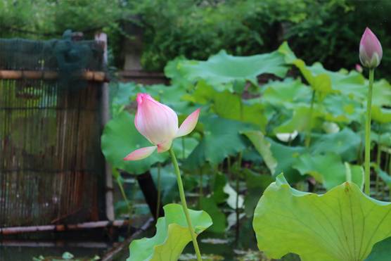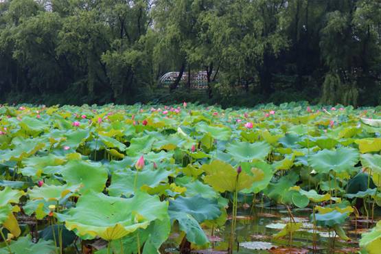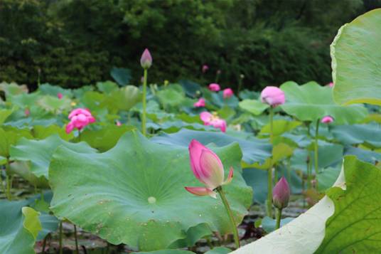 時(shí)值六月,雨水沛然,萬物生長。人間草木,百般葳蕤,千種芬芳。樹木花草繽紛若此,唯獨(dú)輸卻一段清雅——抵不過初夏時(shí)節(jié),江南煙雨中的十頃荷花。禹池之中,小荷早已在一片茂綠間冒出尖尖角。若是在此時(shí)恰逢一場江南甘霖,便是一池的粉頰沾露,荷花帶雨。