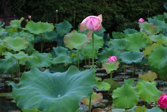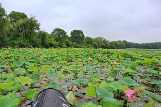 “清水出芙蓉,天然去雕飾?!庇觎F浮在荷塘里,如籠罩著輕紗的幽夢。撫著輕舟而去,令人恍如置身朦朧仙境。