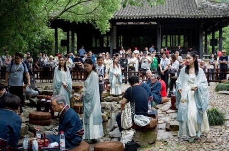 蘭亭景區(qū)曲水流觴活動自推出以來,一直受到廣大游客朋友和學(xué)生團的歡迎。近期,景區(qū)為升級研學(xué)游活、提高游客對流觴活動更高的美感度要求,對流觴活動中的修禊舞環(huán)節(jié)進(jìn)行了重新編排。修禊舞環(huán)節(jié)時間雖然不長但是整場活動中唯一的舞蹈環(huán)節(jié),可看性強,美感度高,如果能更好的展現(xiàn)必將是整場活動的亮點。新版的修禊舞仍以蘭亭山水為主題,不僅重新編排延長至3分鐘,還邀請專業(yè)古典舞老師摳動作,設(shè)計了6人舞蹈、4人舞等滿足不同場次的活動需求,重新選購了更貼切蘭亭的水墨風(fēng)漢服舞衣,以舞寄景,情景交融。