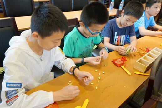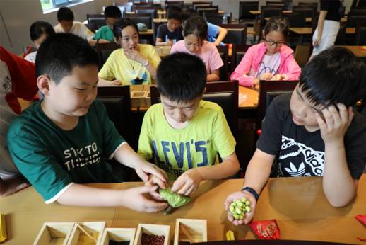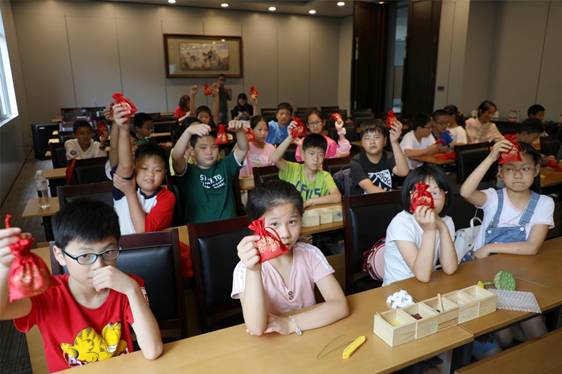 動畫結(jié)束后,大家在學(xué)堂上親手制作五谷祈福袋,以追思前賢“肇始華夏、澤被萬代”的不朽功績。