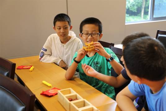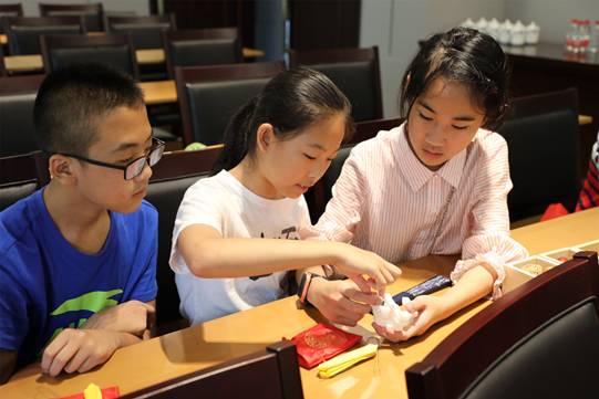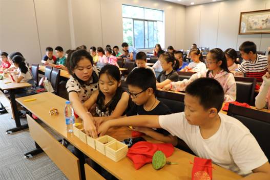 為讓大家更好地了解斗拱的連接方式,學(xué)堂為同學(xué)們準(zhǔn)備了斗拱模型。同學(xué)們根據(jù)指導(dǎo)互相幫助,將模型的木塊結(jié)構(gòu)嚴(yán)密扣合,達(dá)到“天衣無縫”的程度。