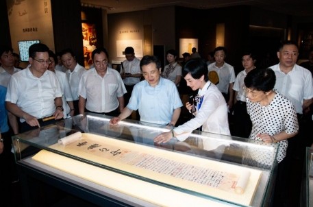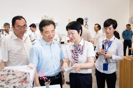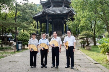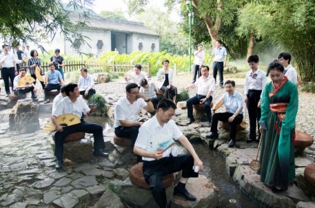 在蘭亭景區(qū),周書記一行參觀了鵝池、蘭亭碑亭等著名景點(diǎn),并在曲水流觴處體驗(yàn)仿古的蘭亭雅集活動(dòng),雖驕陽(yáng)似火,卻無(wú)法抵擋來(lái)賓們參與活動(dòng)的興致。在“蘭亭的故事”文創(chuàng)專區(qū),蘭亭景區(qū)主任湯曉蕾向周書記一行介紹了文旅融合大背景下,蘭亭景區(qū)自主設(shè)計(jì)開發(fā)的文創(chuàng)產(chǎn)品,“竹”系列、“蘭”系列、“白鵝”系列等七大類千余種產(chǎn)品,獨(dú)具匠心又意趣萌動(dòng),深受來(lái)賓們注目。