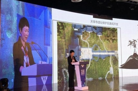 今年書法節(jié)前夕,蘭亭景區(qū)內(nèi)蘭渚山腳下,占地40000多平方米的天章寺遺址保護區(qū)建成開放。保護區(qū)以天章閣為主體,依據(jù)地形、地勢以展廊、曲水亭和宋池亭等圍合出較為完整的空間。天章寺遺址是全國重點文物保護單位蘭亭的重要組成部分,遺址陳列的價值在于它既呈現(xiàn)了歷史,又復(fù)活了蘭亭記憶。遺址將歷史、人文融入自然山水之中,讓人們在王羲之曾經(jīng)“流觴曲水”之地,感受“清流激湍”“映帶左右”,體驗文化、旅游、生態(tài)相融合的樂趣,使書法圣地更富有生機和活力。