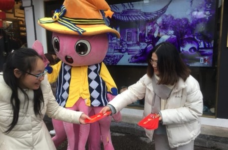 本次地推,鏡湖樂(lè)園為廣大游客送上了樂(lè)園定制的紅包,伴隨著一聲聲“新年快樂(lè)” 為大家?guī)?lái)了一份份新春的祝福。尤其是鏡湖樂(lè)園的吉祥物“爪爪”,受到了眾多游客的喜歡,特別是小朋友們,看見(jiàn)活潑可愛(ài)的人偶,紛紛圍著或握手或合影,人群中不時(shí)傳出歡聲笑語(yǔ)。