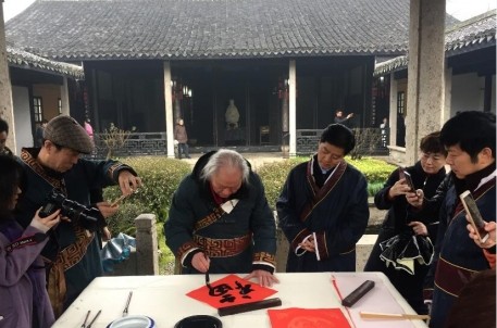 今年的大年初一上午10點(diǎn),按照慣例,景區(qū)主要領(lǐng)導(dǎo)、市委宣傳部副部長(zhǎng)、市文化廣電旅游局局長(zhǎng)何俊杰、以及蘭亭書(shū)會(huì)的書(shū)法家們首先在景區(qū)右軍祠完成晉圣儀式。與年不同的是,今年各位書(shū)法家們?cè)跁x圣后一同齊聚墨華亭,迎來(lái)書(shū)法圣地蘭亭的首屆“年度漢字發(fā)布會(huì)”。由蘭亭書(shū)會(huì)會(huì)長(zhǎng)王建華宣布“融”為本年度漢字,并開(kāi)筆書(shū)“融”,其余書(shū)法家均紛紛揮毫,墨華亭下墨飛花,與游客朋友共同見(jiàn)證這一有意義的時(shí)刻!