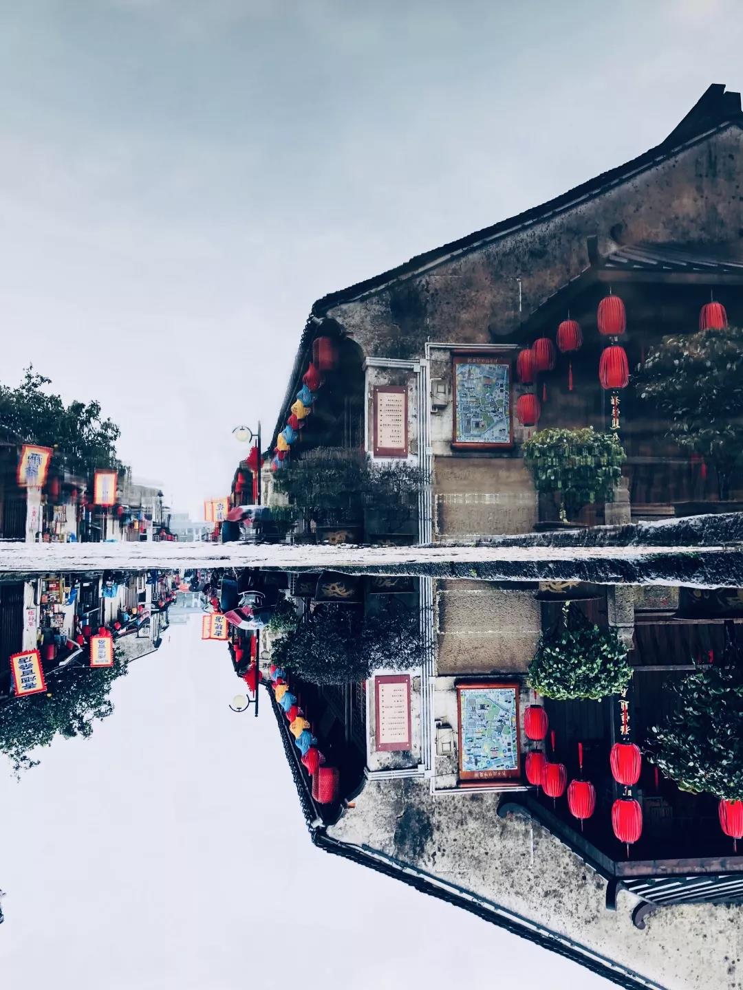 老街兩岸的民宅倒影在水中,輕柔地舞動(dòng)著,白色與黛色將河水染成了一幅水墨畫,讓河水飽蘸老街的墨味。