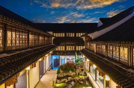 “紹興城里五萬(wàn)人,臺(tái)門足有三千零”。這是一家枕河而立的臺(tái)門人家,一家集聚了魯迅文化的主題酒店。整個(gè)建筑分為上下兩層,錯(cuò)落有致,恬靜溫馨。