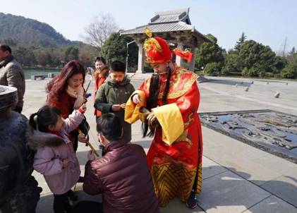新春假日期間,大禹陵將繼續(xù)為游客朋友展現(xiàn)傳統(tǒng)民俗禮儀之美,在享殿中,將每日安排祭祀大禹表演,并且融入互動元素,游客可身著古服,在司儀主持下敬香、敬酒、祝福等,參與到祭祀儀式中。