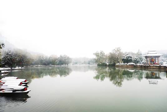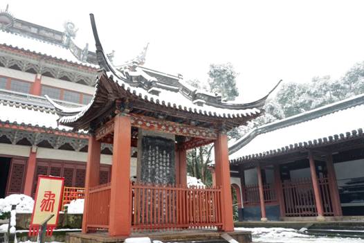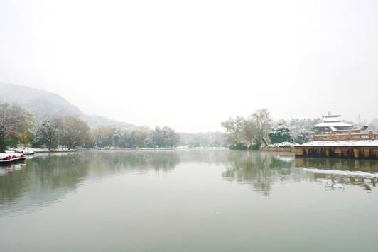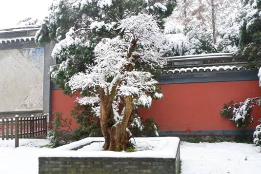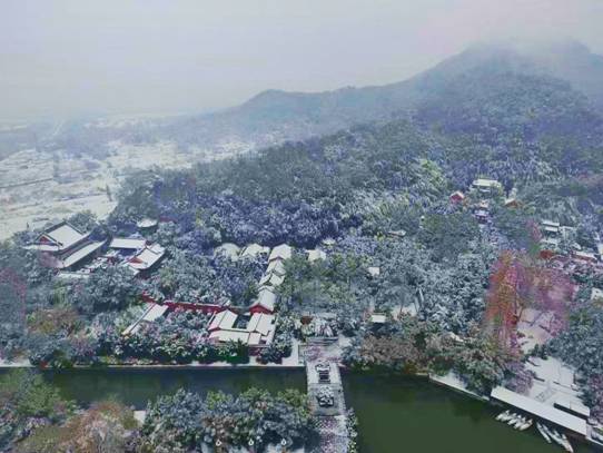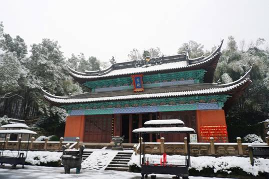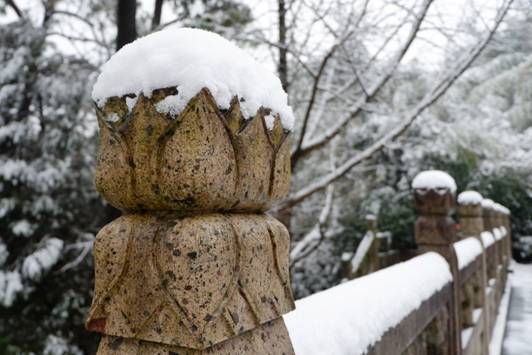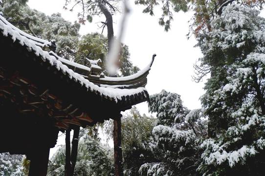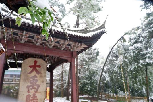 南鎮(zhèn)會(huì)稽在白雪映襯下,顯得靜默神秘,魅力動(dòng)人。南方的雪景,便是這般溫婉,來時(shí)纖塵不染,落時(shí)點(diǎn)塵不驚。