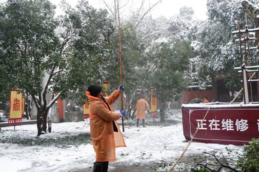 下雪是件美好的事,但對(duì)于景區(qū)工作人員來說,安全重于一切,每次的風(fēng)雪冰凍都猶如一場(chǎng)戰(zhàn)斗。大禹陵景區(qū)啟動(dòng)24小時(shí)抗雪防冰凍行動(dòng),時(shí)刻關(guān)注雪情,排查安全隱患。