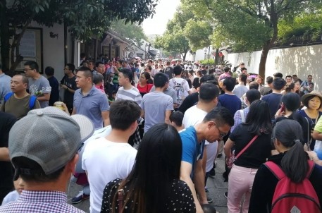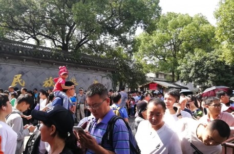 面對國慶期間數以萬計的游客,景點檢票員們依然保持微笑,一絲不茍地核對證件,以便游客們順利入園參觀,同時還不忘提醒安全。