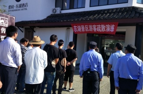 為應(yīng)對黃金周臨時游客中心接待壓力,培訓(xùn)員工在突發(fā)狀況中的應(yīng)急能力,9月28日,東湖景區(qū)開展高峰期接待應(yīng)急疏散演練。