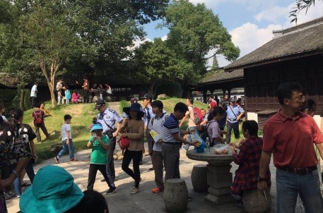 針對此,景區(qū)在節(jié)前積極籌備國慶專題接待方案,多措并舉,確保國慶黃金周接待平穩(wěn)安全有序。一是節(jié)前演練,強化隊伍應(yīng)急反應(yīng)能力。針對臨時游客中心接待容量小,高峰期可能出現(xiàn)游客擁堵引發(fā)矛盾等不穩(wěn)定安全隱患,景區(qū)在節(jié)前制訂游客中心高峰期疏導(dǎo)方案,并組織員工實施專項安全演練,保安、講解員、游客中心主任、值班長各崗位通力合作,疏散、勸阻、引導(dǎo)、秩序維護一氣呵成,通過實地演練,員工職責明確,進一步提高了突發(fā)狀況應(yīng)對能力。二是措施到位,確保假日接待安全順暢。節(jié)前,景區(qū)組織專題安全檢查,為十一接待工作“把脈開藥”:增設(shè)游客中心場外排隊區(qū)域,進出口人車分離,后備烏篷船臨時分流碼頭,增加巡邏安保力量等。假日期間景區(qū)共計調(diào)配隔離欄80余個,增設(shè)警示、提示、引導(dǎo)標牌30余塊,更新救生衣80余件,增調(diào)管理人員10余人、臨時船工30余人、安保人員15人、志愿人員15人,各項措施為假日接待保駕護航。三是黨員示范,提升高峰期整體服務(wù)品質(zhì)??紤]到黃金周大客流,在落實全員增崗、明確各崗位假日職責要求同時,景區(qū)實行假期崗位分級管理,對重點、關(guān)鍵崗位,如景區(qū)出入口、臨時游客中心區(qū)域、檢票進園通道、各點烏篷船碼頭、核心區(qū)域游道沿線、繞門山等,配備區(qū)域黨員帶領(lǐng)人,分片、分區(qū)第一時間解決游客咨詢、服務(wù)需求,將黨員先鋒性嵌入到為游客服務(wù)的最前線,以點帶面,進一步提升了景區(qū)高峰期服務(wù)品質(zhì)。四是共建助力,強化區(qū)域聯(lián)動。針對假日游客車輛進出景區(qū)擁堵104國道、景區(qū)流量增加治安矛盾風險升級、景區(qū)周邊小攤小販影響旅游秩序等問題,景區(qū)與轄區(qū)交警支隊、皋埠派出所黨支部共建聯(lián)動,增派警力、安保巡邏力量,疏導(dǎo)104景區(qū)沿線交通、維護景區(qū)內(nèi)治安秩序,助力景區(qū)假日旅游接待。