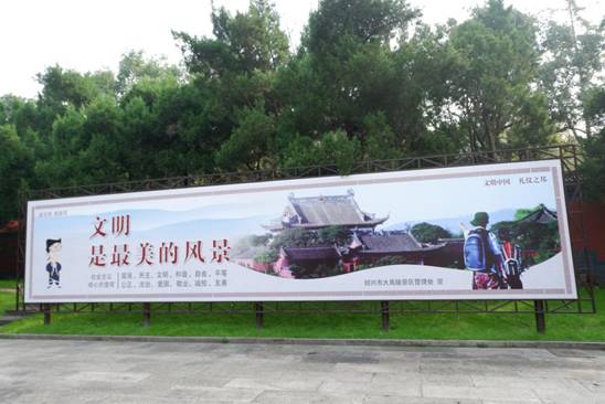 除此之外,景區(qū)還著力強(qiáng)化社會(huì)主義核心價(jià)值觀、文明旅游宣傳,在游客中心、大入口、景區(qū)內(nèi),通過噴繪廣告、宣傳海報(bào)、LED電子屏等多形式,引導(dǎo)廣大游客融入文明城市創(chuàng)建的氛圍中。
