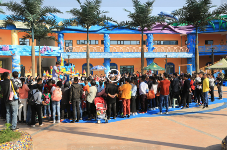 表演散場,人群的注意力又轉(zhuǎn)向了一個個神靈活現(xiàn)的白堊紀霸主。它們搖晃著尾巴,張大嘴巴,發(fā)出嘶吼的聲音??涩F(xiàn)如今小朋友們似乎也都知道它們是假的,并不害怕恐龍,膽子大些的上前去拍打拍打,或者走上前去比比嗓門。還有些小朋友在園中玩著腳踏船、蹦床、淘氣堡、撈撈金魚等,好不歡樂。原來紹興夢幻水世界也在逐步探索非夏季與其它產(chǎn)業(yè)的合作之道。
