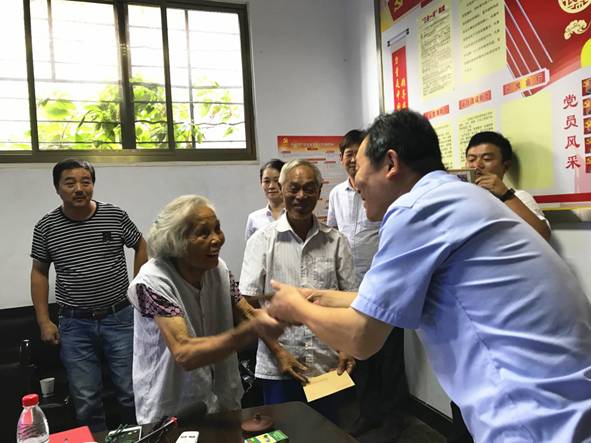 交流結(jié)束后,景區(qū)黨支部書記呂濟軍在冢斜古村黨支部書記余利民介紹下,看望、慰問了冢斜村兩位老黨員余亞文、余光庭同志。