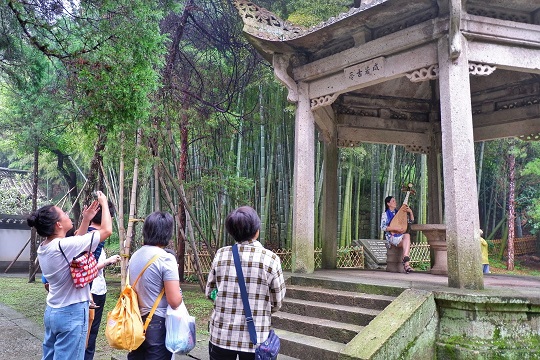 游客們紛紛駐足聆聽。