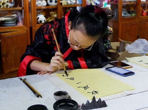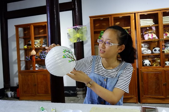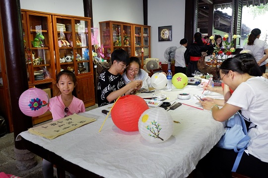 在景區(qū)的祭祖堂內(nèi),游客們躍躍欲試,在燈紙上繪花、繪鳥,正DIY著中秋花燈。大家表示參與到手工藝制作中,頗有一番傳統(tǒng)的中秋之樂。