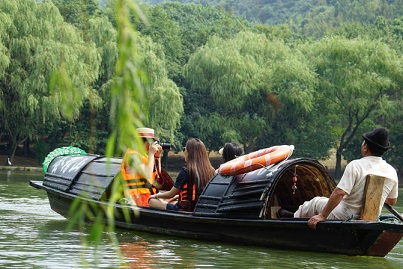 乘著會稽烏篷,伴著習習秋風,品嘗新鮮紅菱。對岸飄來隱約的桂花香,如此沁人心扉。
