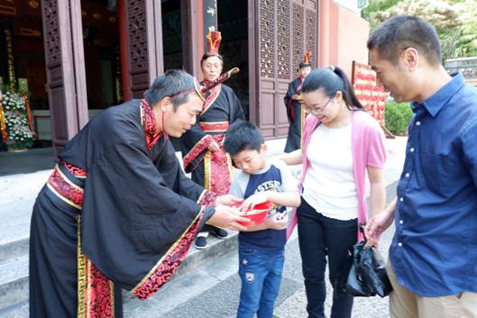 享殿里,游客跟隨禮生以古服古禮祭禹,體驗(yàn)祭祀文化,傳承華夏習(xí)俗,祈求幸福安康。