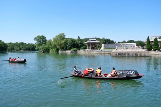 不少游客選擇乘坐獨(dú)具紹興特色的水上交通工具——烏篷船,共賞會(huì)稽山水的獨(dú)特風(fēng)情。