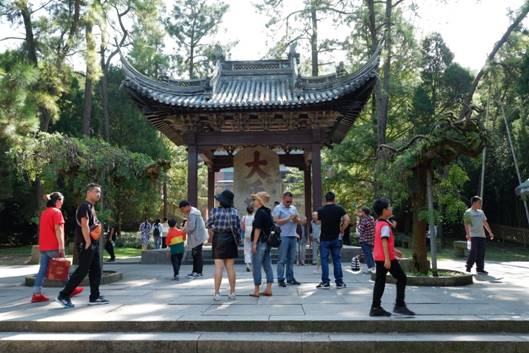 來自全國(guó)各地的游客,進(jìn)入南鎮(zhèn)會(huì)稽山觀光游覽,