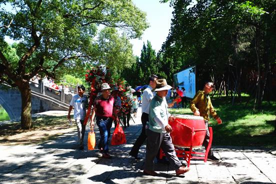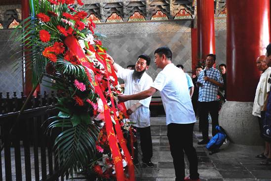 9 時(shí)50分,祭祀活動(dòng)正式開始。全體肅立、鳴放禮炮、敬獻(xiàn)祭品、敬獻(xiàn)花籃。