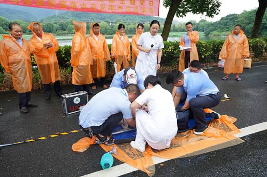 急救講解。紹興市文理附屬醫(yī)院ICU護(hù)士長及120急救分站站長現(xiàn)場講解、演示如何搶救溺水者。